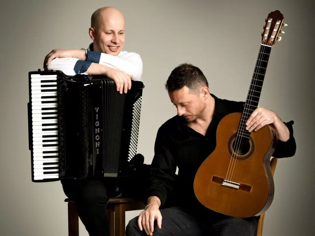 當晚音樂會,是以兩首獨奏曲開場,Andre和Arseniy似乎想留下一絲懸念,先讓觀眾領略一番兩件樂器強大的獨奏力量——正因為有這種“獨奏力量”,吉他和手風琴在重奏中的主次地位可以靈活互換,而非傳統二重奏“旋律-伴奏”或“高聲部-低聲部”固定的兩分法。
