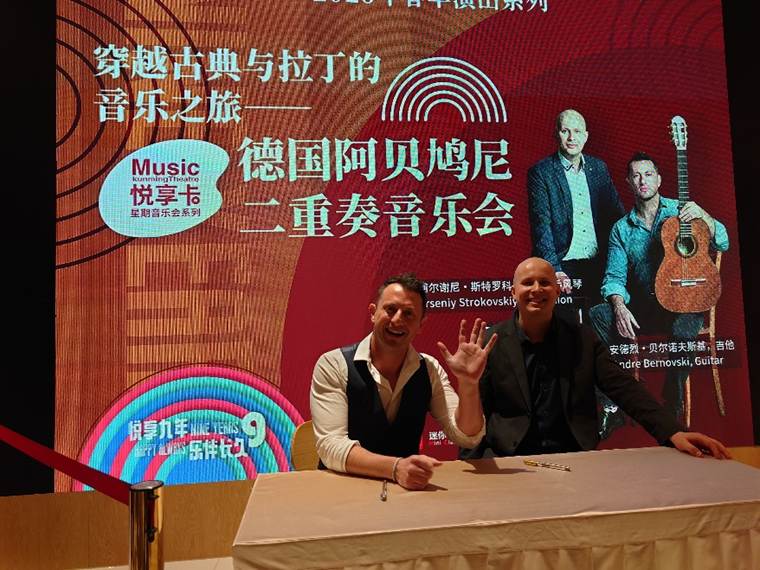 德國阿貝鳩尼二重奏在昆明演出結束後為樂迷簽售